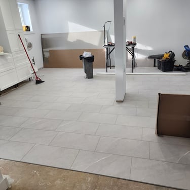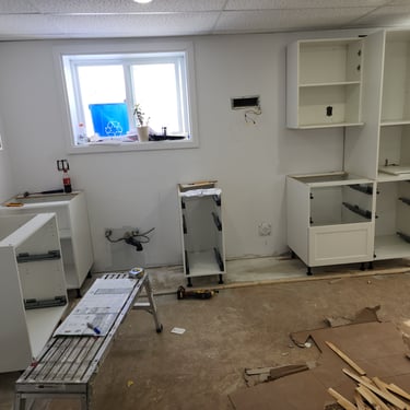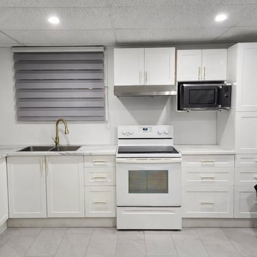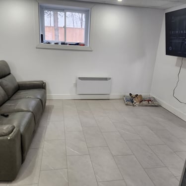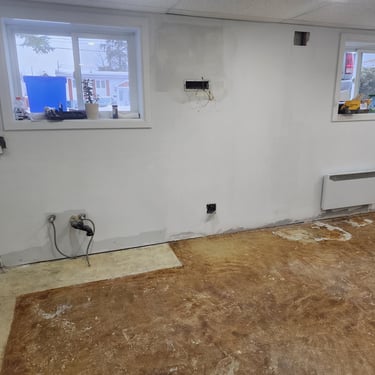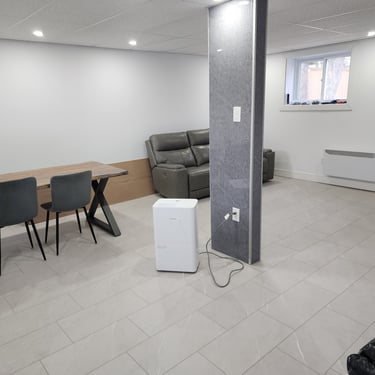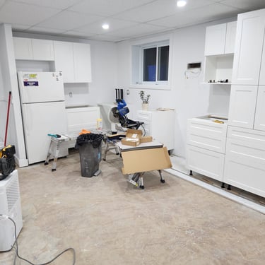 We renovate basements into legal suites, including kitchens, flooring, and soundproofed ceilings using acoustic insulation and Sonopan panels, with fire-rated suspended ceiling systems built to code.
